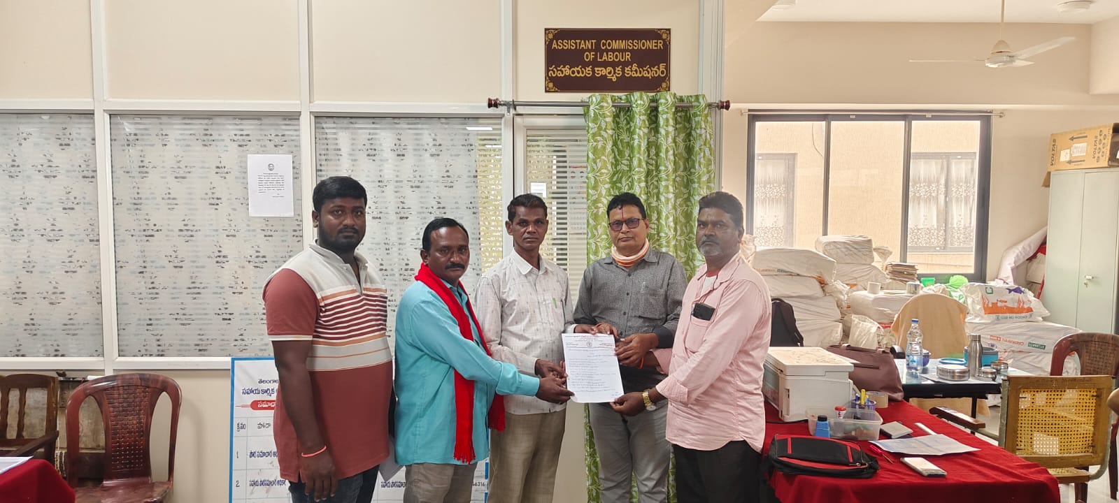 నిర్మాణ కార్మికుల సమస్యలు పరిష్కరించాలి జిల్లా కార్మిక శాఖ అధికారికి సమస్యలపై వినతి పత్రం కొత్తగూడ....